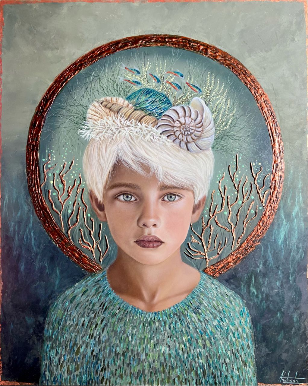 Oil and gold foil on board